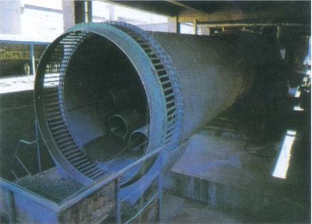 單筒冷卻機(jī)屬于回轉(zhuǎn)圓筒類設(shè)備,主要由支撐裝置、筒體部、傳動(dòng)裝置、頭尾密封罩、頭尾密封裝置等部分組成。單筒冷卻機(jī)的功能是使回轉(zhuǎn)窯產(chǎn)生的高溫物料經(jīng)過冷卻機(jī)冷卻到一定溫度,再進(jìn)行運(yùn)輸、貯藏和下一步的處理。根據(jù)設(shè)備物料、工藝、工況不同可分為風(fēng)冷冷卻機(jī)、水冷冷卻機(jī)、風(fēng)冷水冷混合冷卻機(jī)。